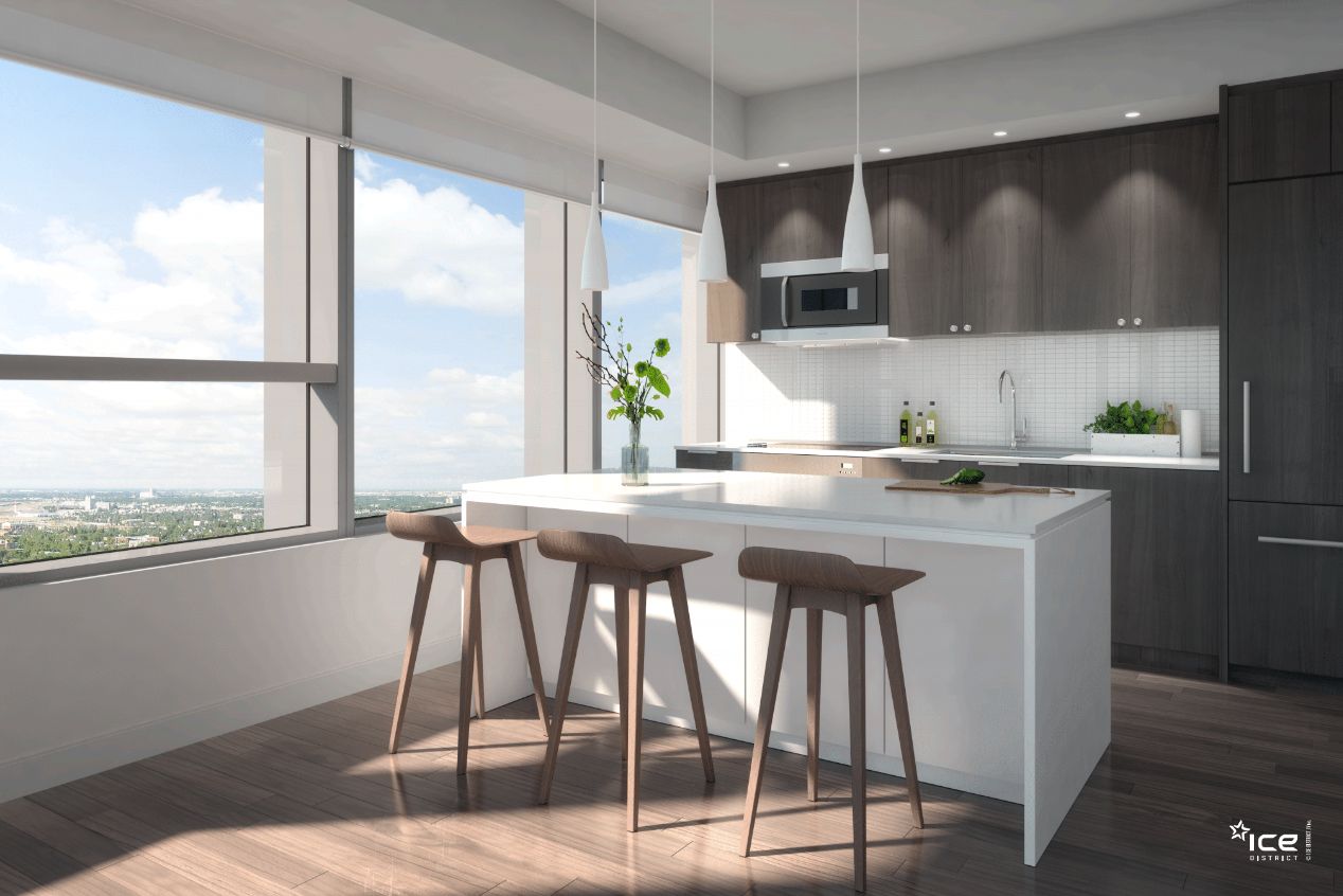 High atop the 60-storey Stantec Tower sits 483 private condominium suites. SKY Residences also offers more than 20,000-square-feet of amenity space on the 30th floor, a rooftop patio, outdoor fireplaces and a fitness centre.