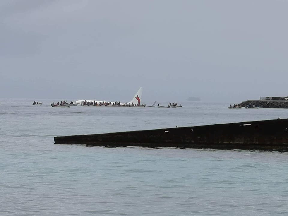 The Boeing 737 aircraft hit the lagoon surrounding the small island about 9.30 a.m. local time (2330 GMT Thursday), Emilio said. The passengers and crew were taken to hospital but no serious injuries were reported.