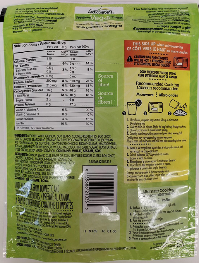 The Canadian Food Inspection Agency says it is doing a food safety investigation on Arctic Gardens brand Veg-e Protein products because of defects in the packaging.