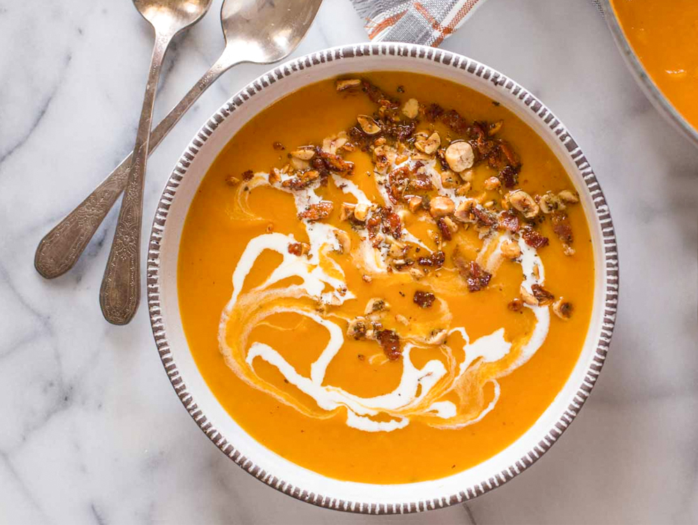 Bring on the holiday with this pumpkin soup, made with the addition of cream to keep it light.
