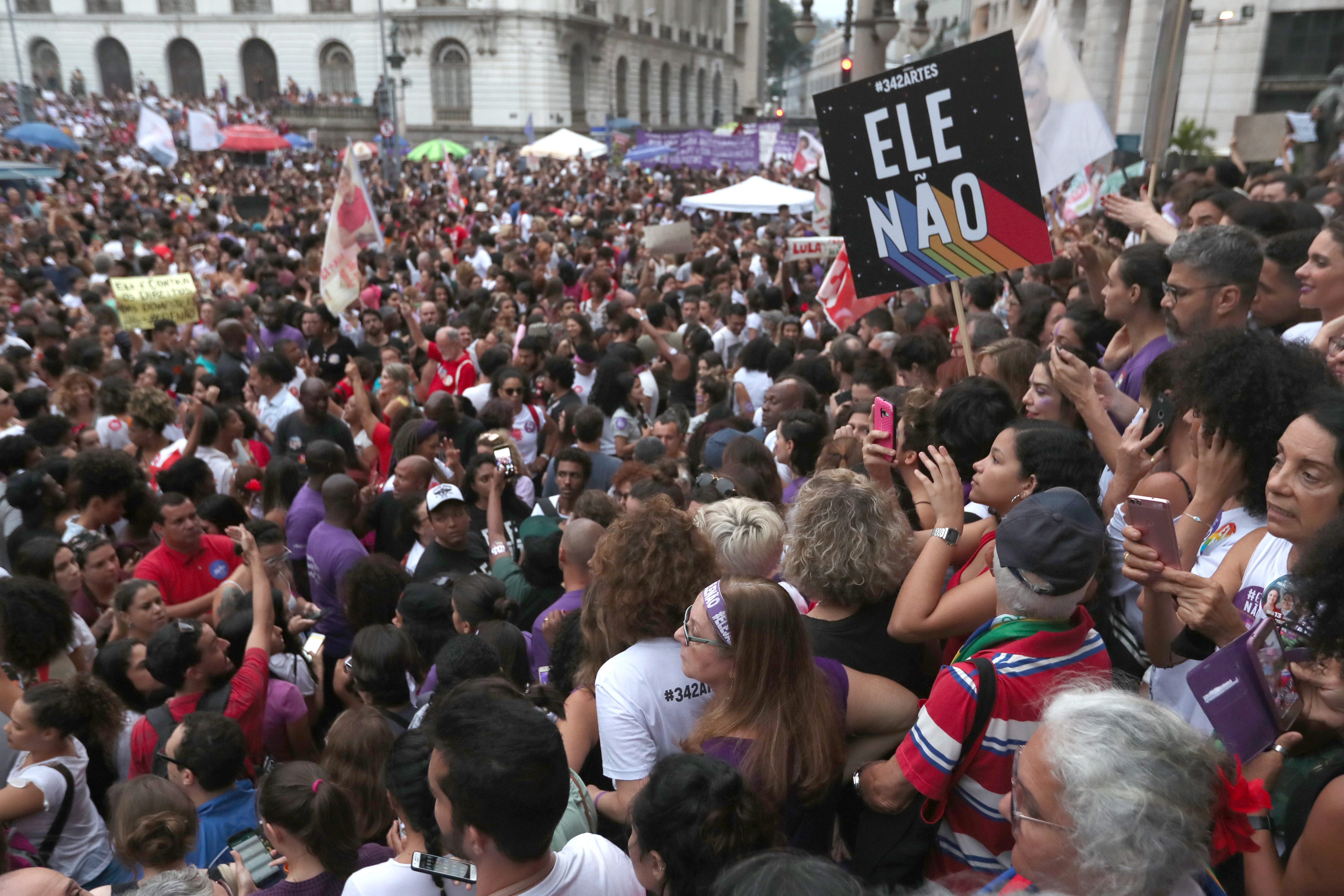 Thousands of Brazilians took to the streets Saturday in protest against the presidential front-runner, a far-right congressman whose campaign has exposed and deepened divisions in Latin America’s largest country.