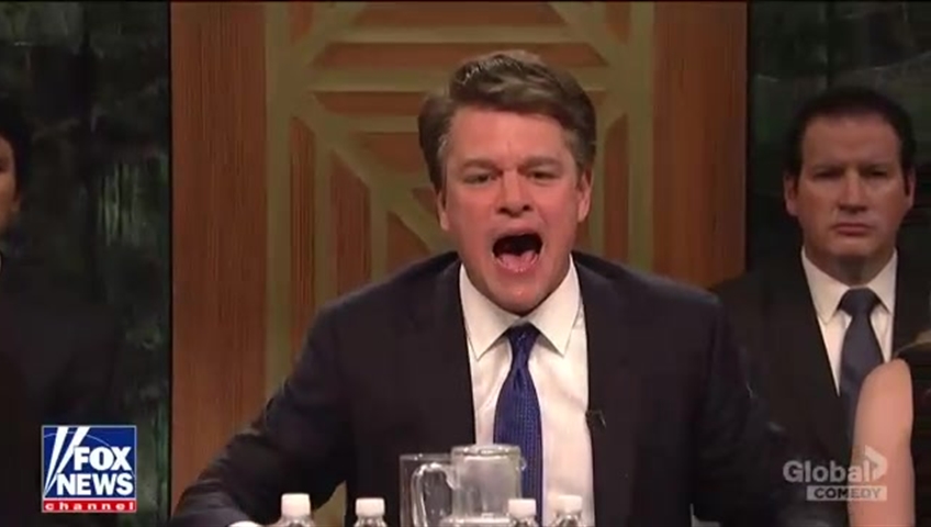 Brett Kavanaugh was played by Matt Damon, who acted the role in an aggressive manner while periodically chugging water and sniffing.