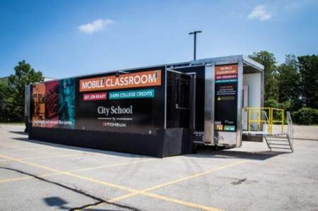 The 53-foot custom built trailer has been motoring around the city for a year, offering tuition-free courses in a bid to break down barriers to education.