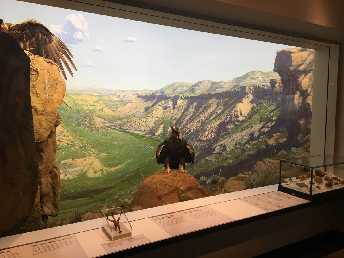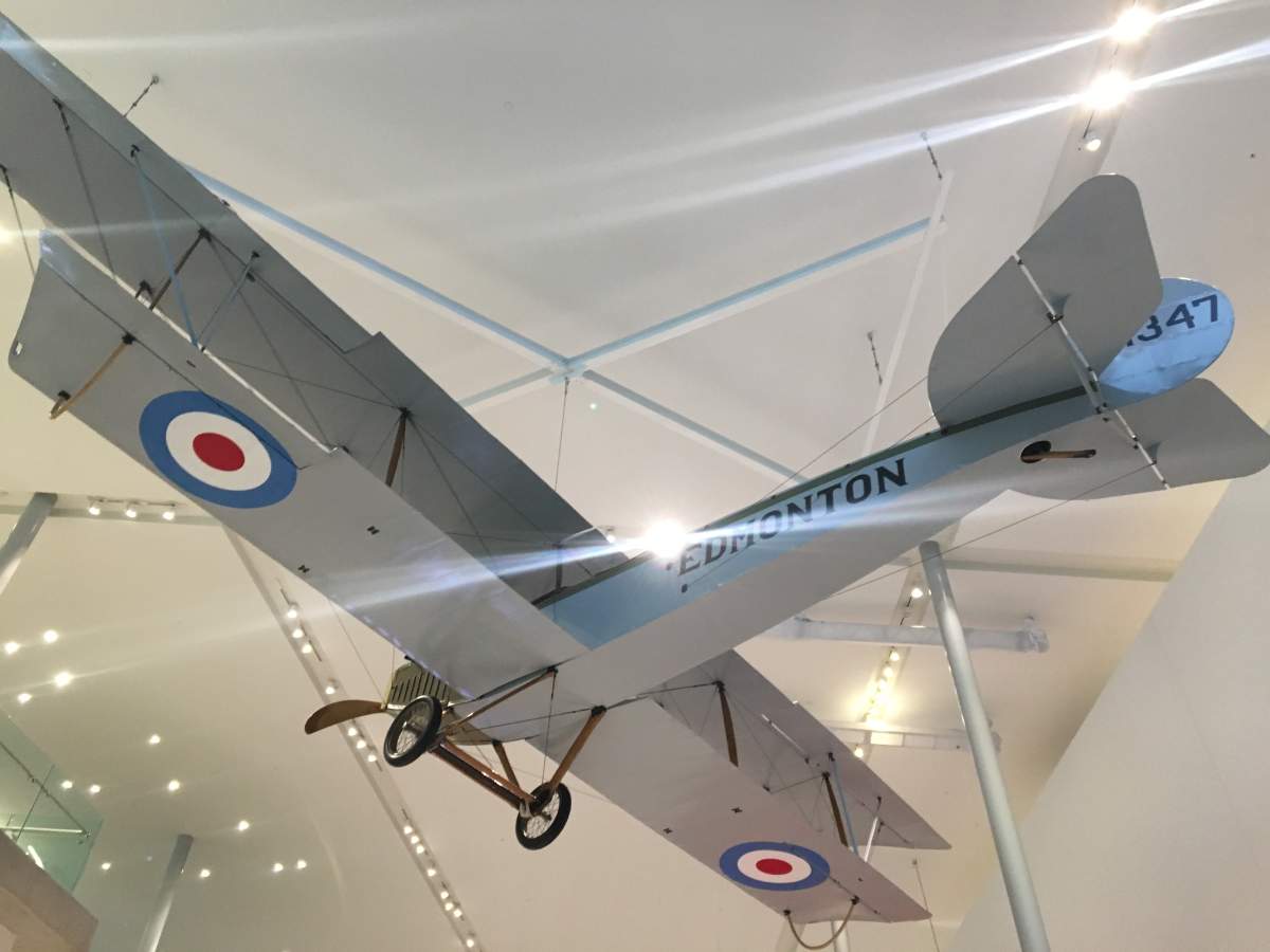 As soon as you walk into the museum, you’re greeted by a massive Albertosaurus. High atop the dinosaur hangs a 1918 biplane.