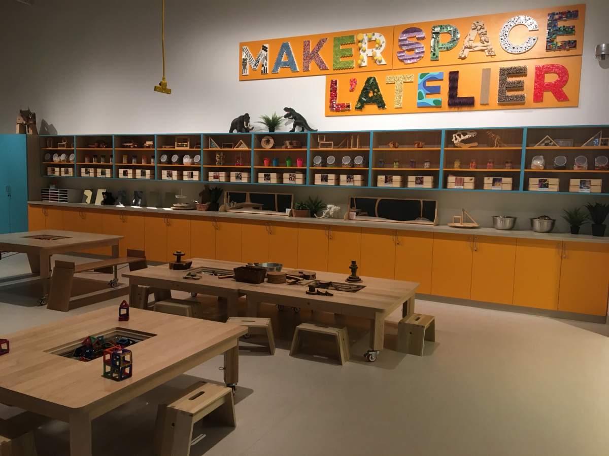 Designed with kids eight years old and younger, the Children’s Space offers kids a hands-on learning space.