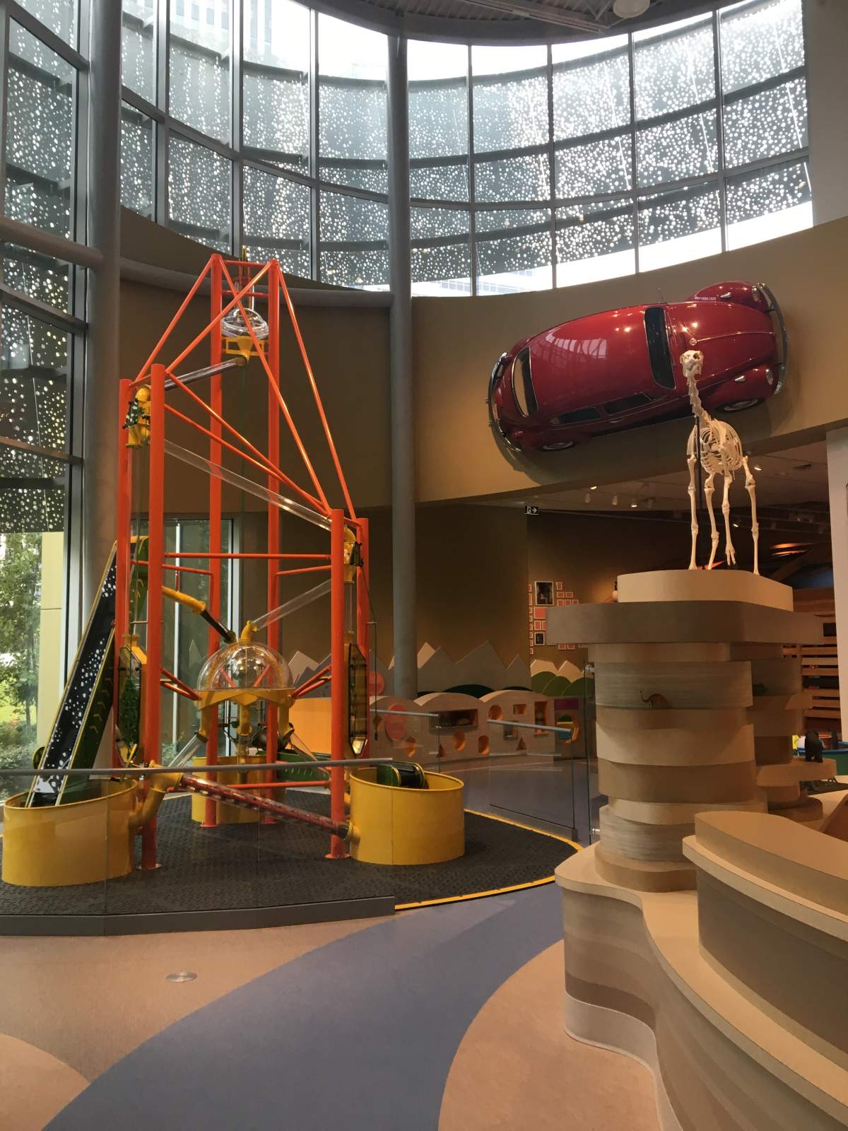 The 7,000-square-foot room is home to all kinds of fun activities for kids, including an interactive dig pit and a theatre.