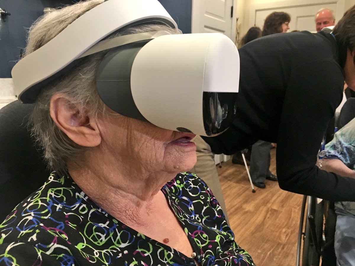 Residents Maxine McDonough and Gloria MacMillan were among the first to try the headsets.