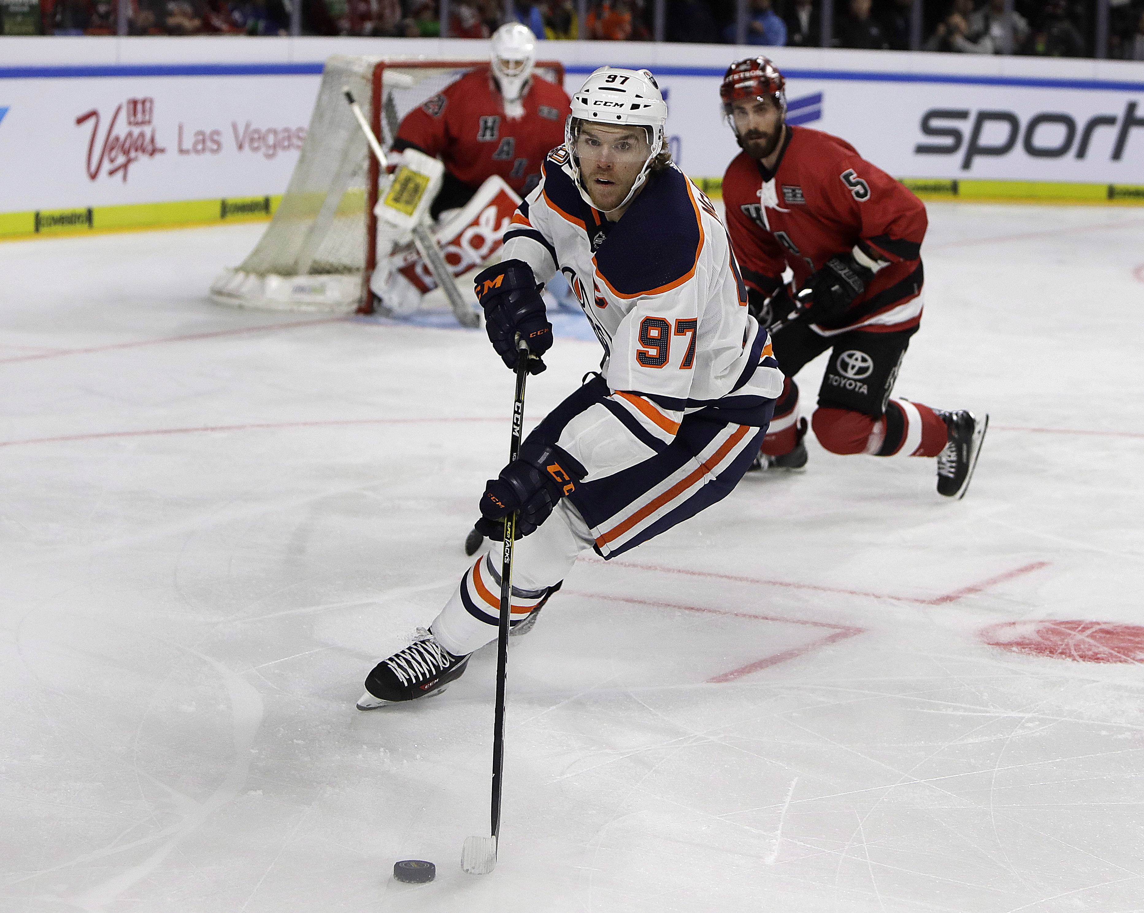 In three-on-three overtime, McDavid worked the puck back to Ethan Bear, whose one-touch pass was deflected in by Ryan Strome.