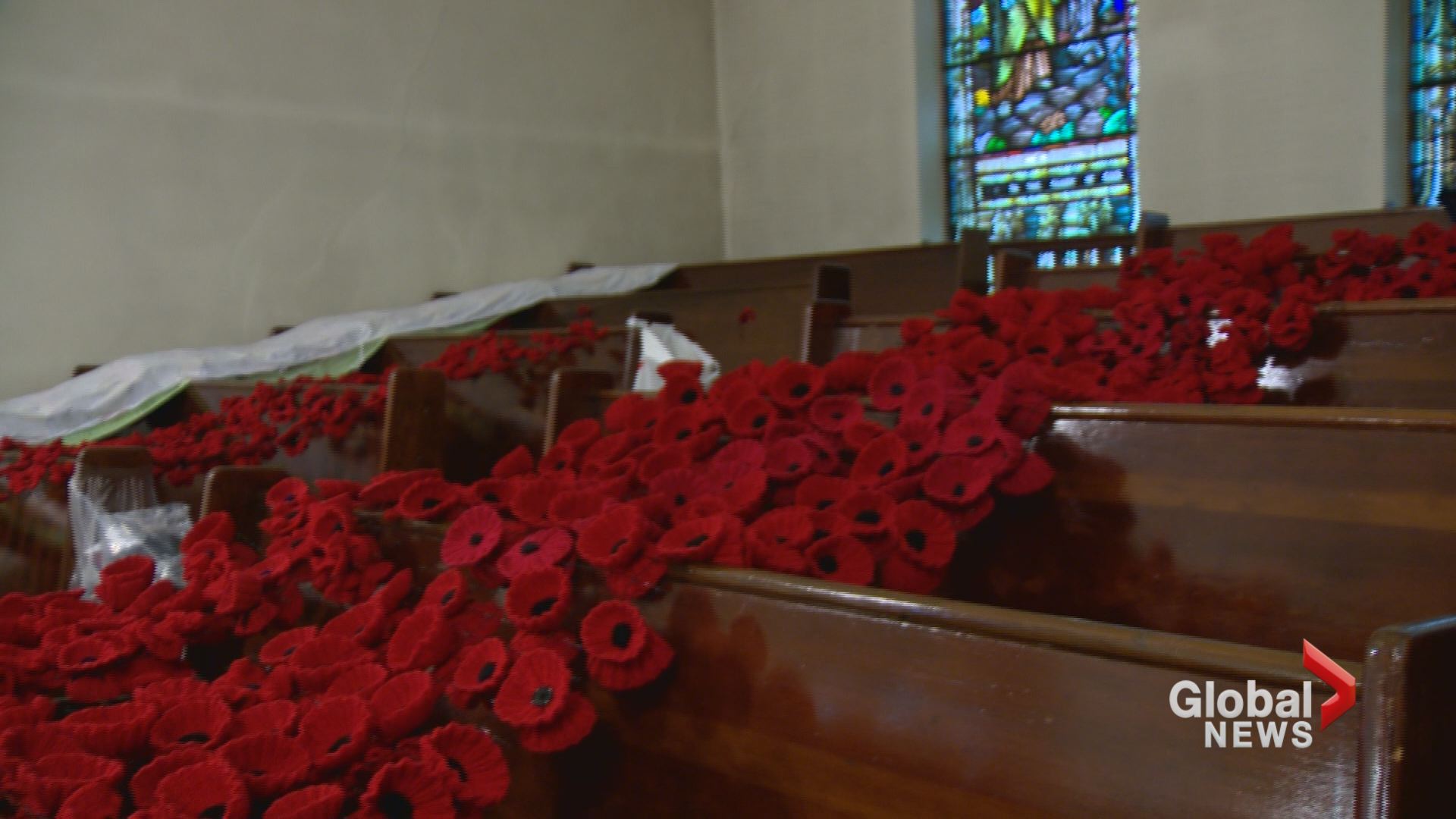 Sinclair and several other volunteers at the church have been working on the project for almost a year, knitting most poppies, crocheting others.