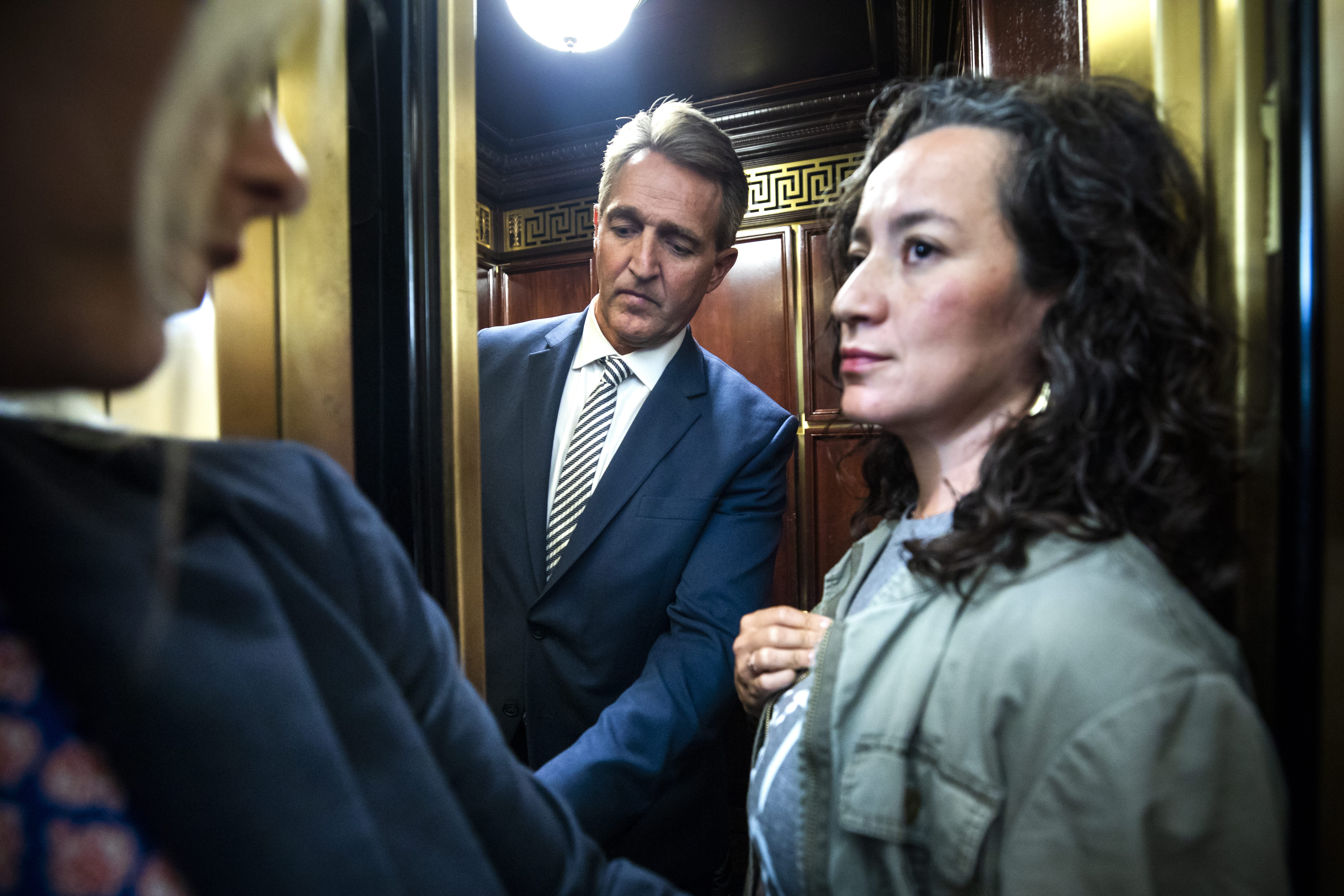 The two women, who said they are sexual assault survivors, stopped Flake on his way to Brett Kavanaugh’s Supreme Court nomination hearing on Sept. 28. Flake said he was going to vote in favour of Kavanaugh’s nomination, who has been accused of sexual assault by California professor Christie Blasey Ford.