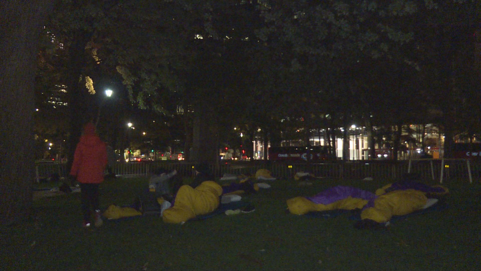Participants were equipped with sleeping bags, pillows and a safe space to rest their heads. They were monitored by security guards.