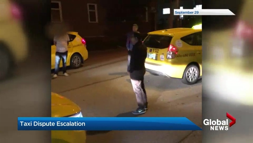 Wazny, a Burnaby-based realtor, contacted Global News with cellphone footage of the encounter that occurred early Saturday morning. She says what began as a dispute with a Yellow Cab driver over his choice of route from Vancouver’s downtown core to Burnaby ultimately ended with a swarm of taxi drivers surrounding her and two friends, who were riding in the cab with her.