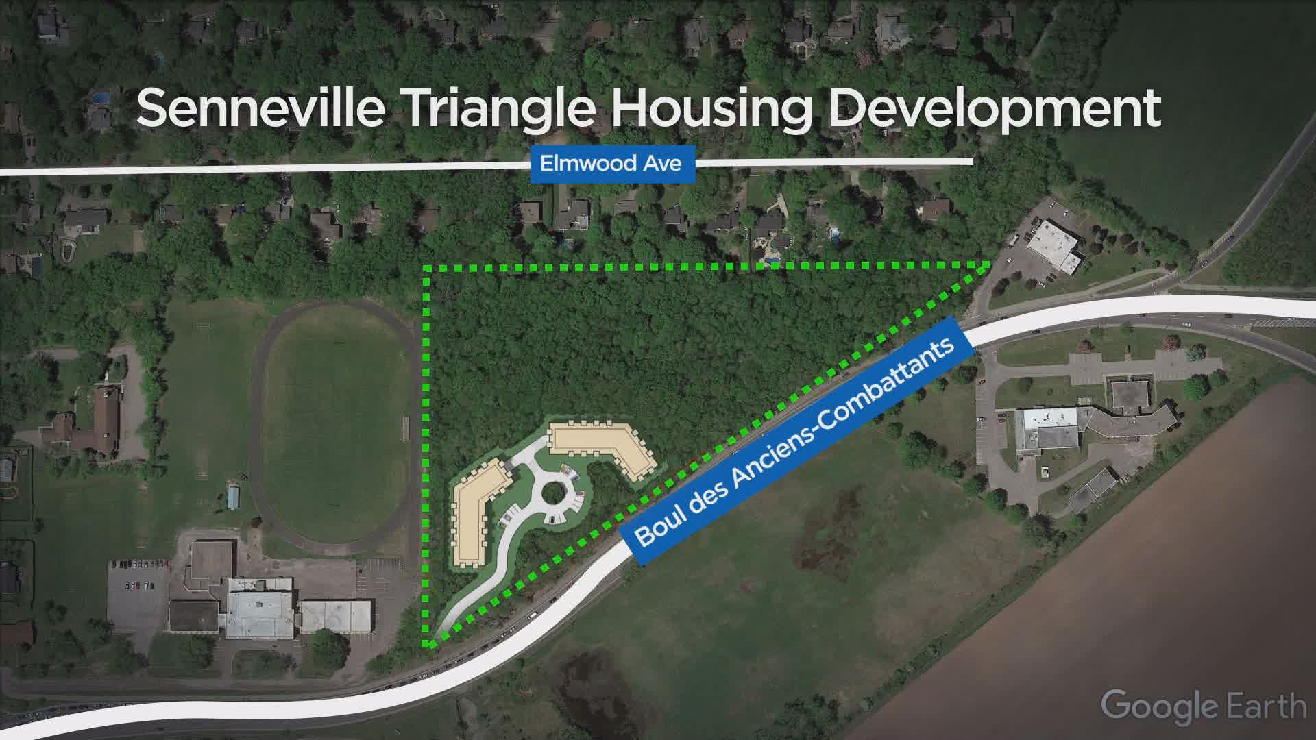 The land straddles the border of Saint-Anne-de-Bellevue and Senneville between Elmwood Avenue and des Anciens-Combattants Boulevard.