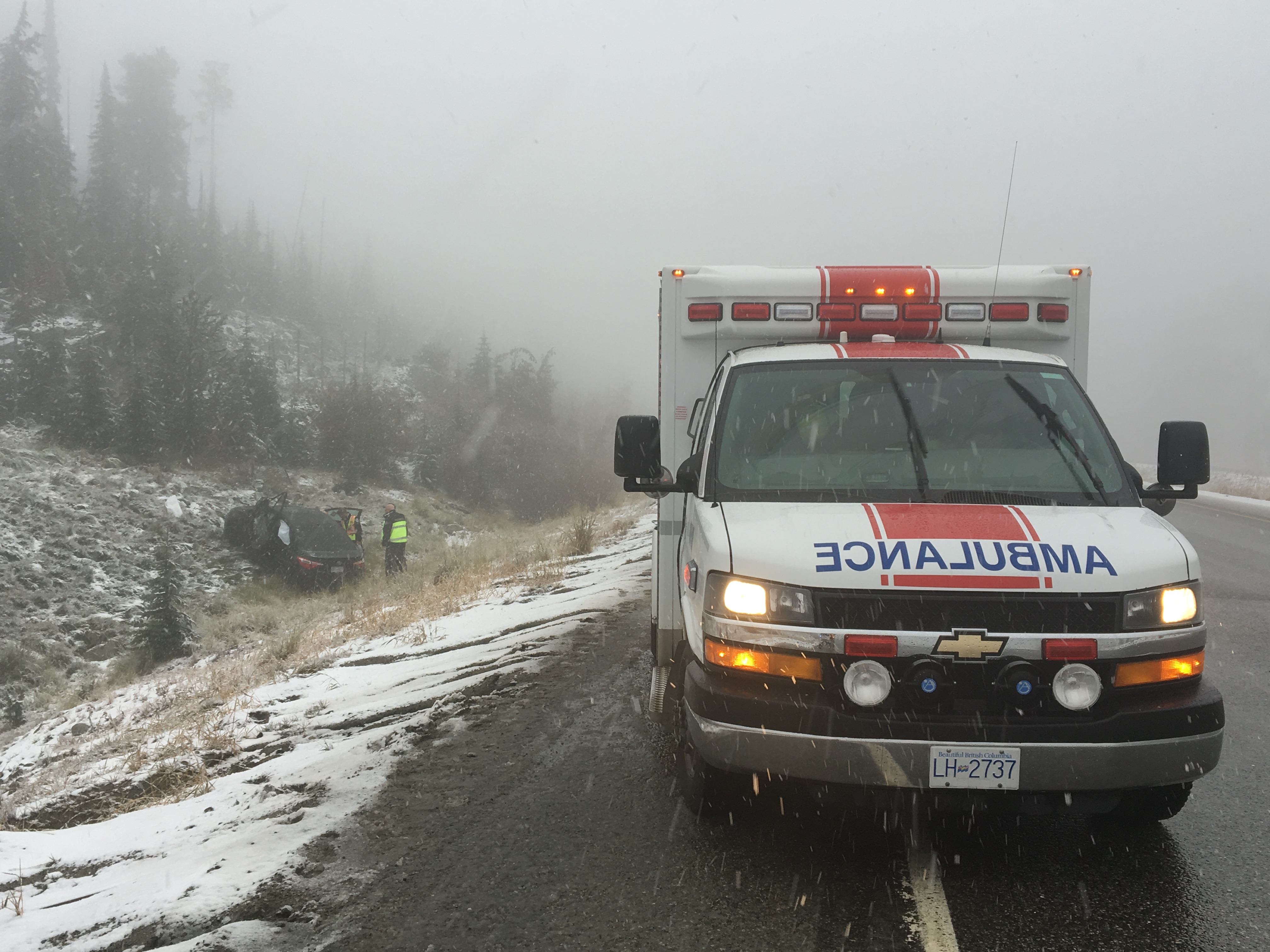 A vehicle went of the road near the summit just after 3 p.m. on Monday afternoon while it was snowing.