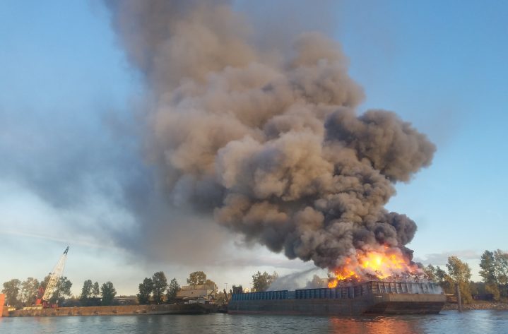 A Schnitzer barge caught fire in August, prompting Metro Vancouver to issue an air quality advisory.