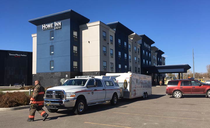 Firefighters and a hazmat unit were sent to the Home Inn & Suites at 253 Willis Cres. after a 911 call about a chemical exposure at roughly 12:40 p.m. CT.