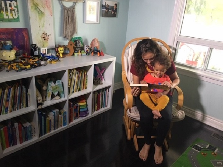 Danielle Lewis rocks her young son Xavier in the bedroom of their east Toronto home and reads him one of his favourite books.