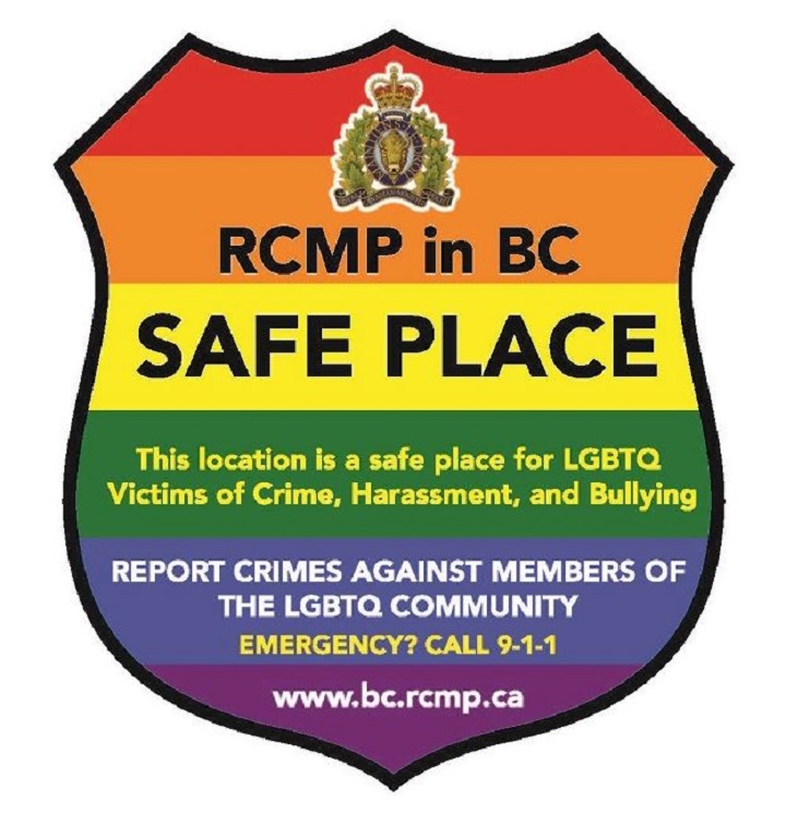 “There is no question that everyone has the right to feel safe in their community,” said RCMP Cst. Kelly Brett. “The Vernon North Okanagan RCMP is committed to promoting acceptance and inclusion within our community through the Safe Place program.”