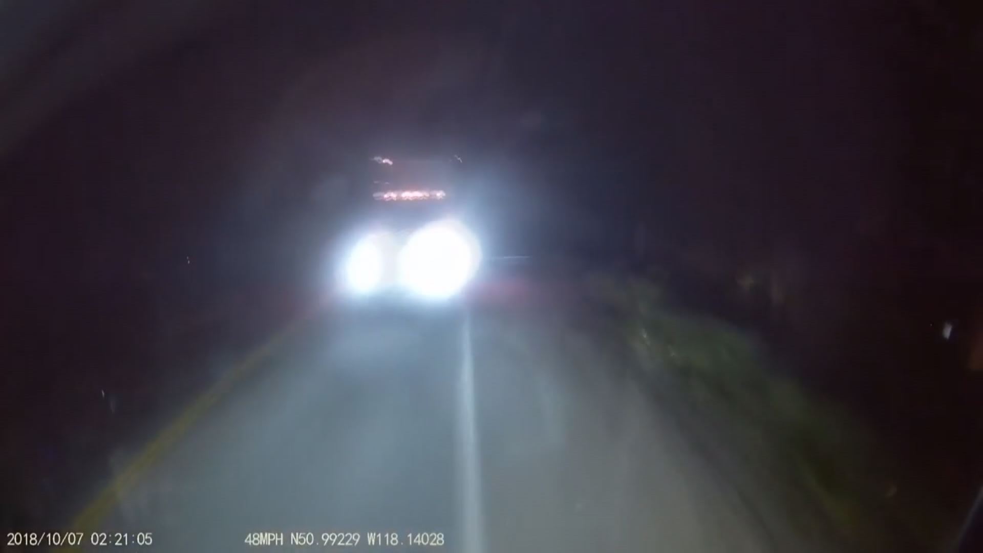 The extremely close call occurred on an undivided two-lane section of Highway 1 and RCMP credit the coach driver’s evasive action for averting a major head-on collision.