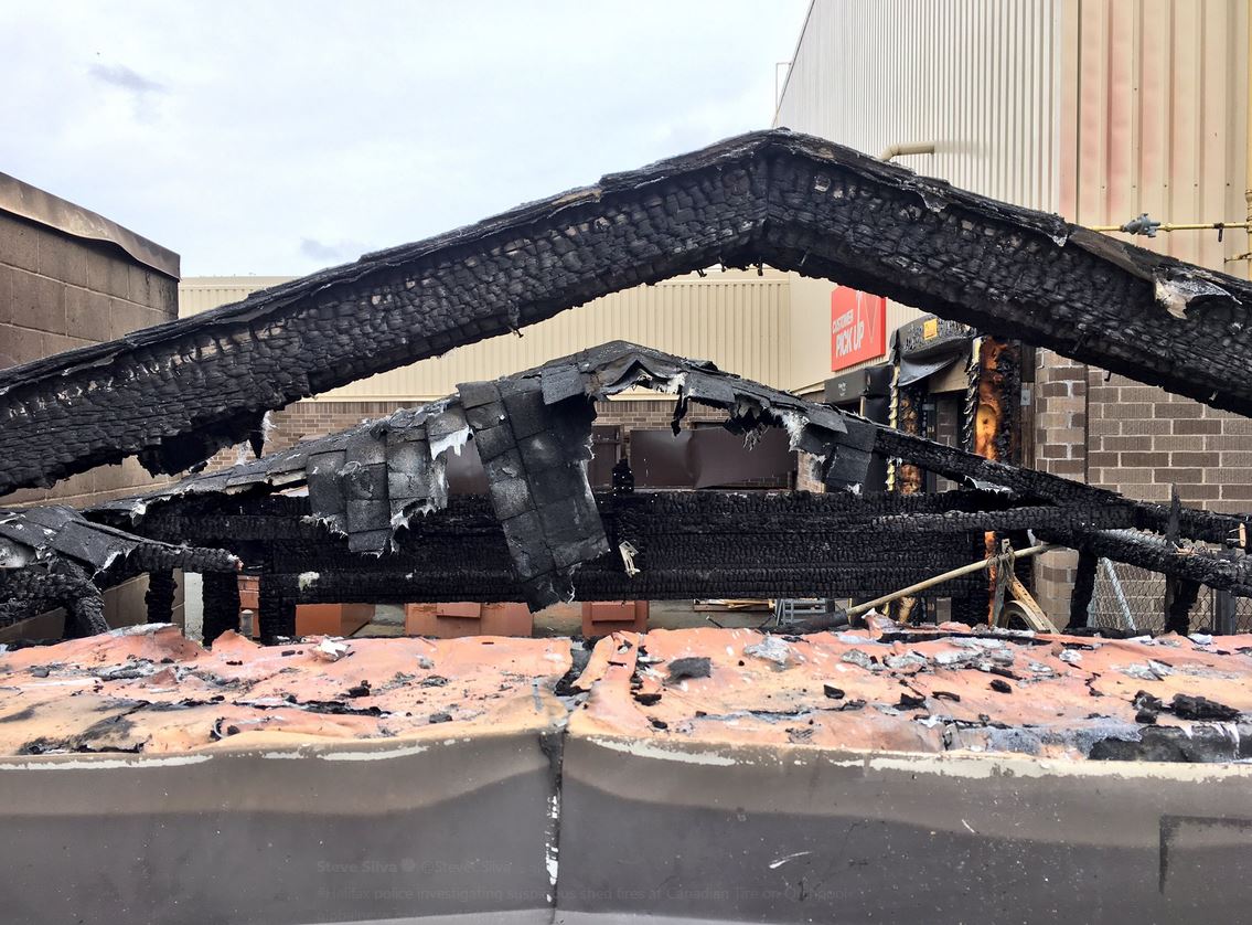 Police say multiple callers reported seeing flames in the area. Officers were able to confirm the sheds belonged to the mall.