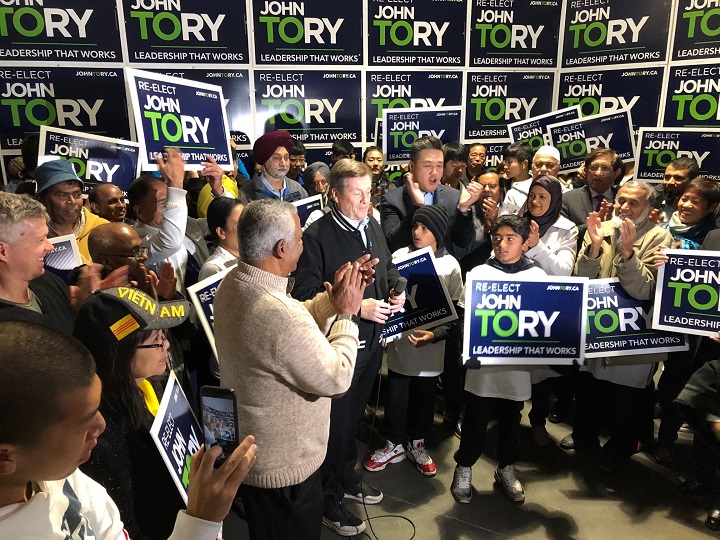 Hundreds of supporters of mayoral candidate John Tory gathered Saturday to organize a targeted campaign.