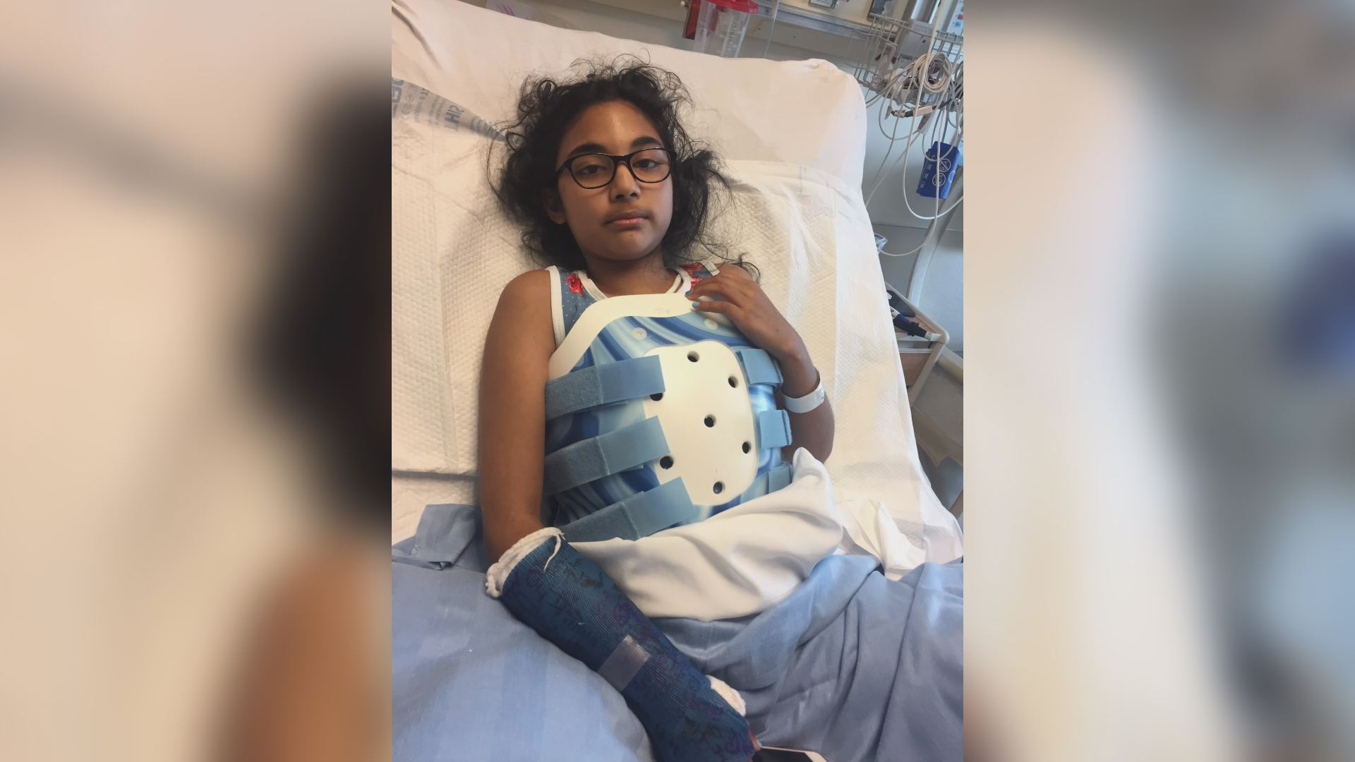 The young girl slipped and fell on July 17 during a hike with her family to Troll Falls in Kananaskis Country, Alta. She suffered a broken back, a collapsed lung, a partially collapsed lung, a skull fracture and a severed spinal cord.