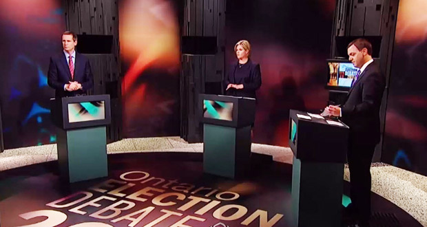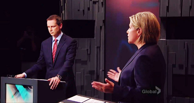 other’s political policies during Tuesday night’s live provincial election
