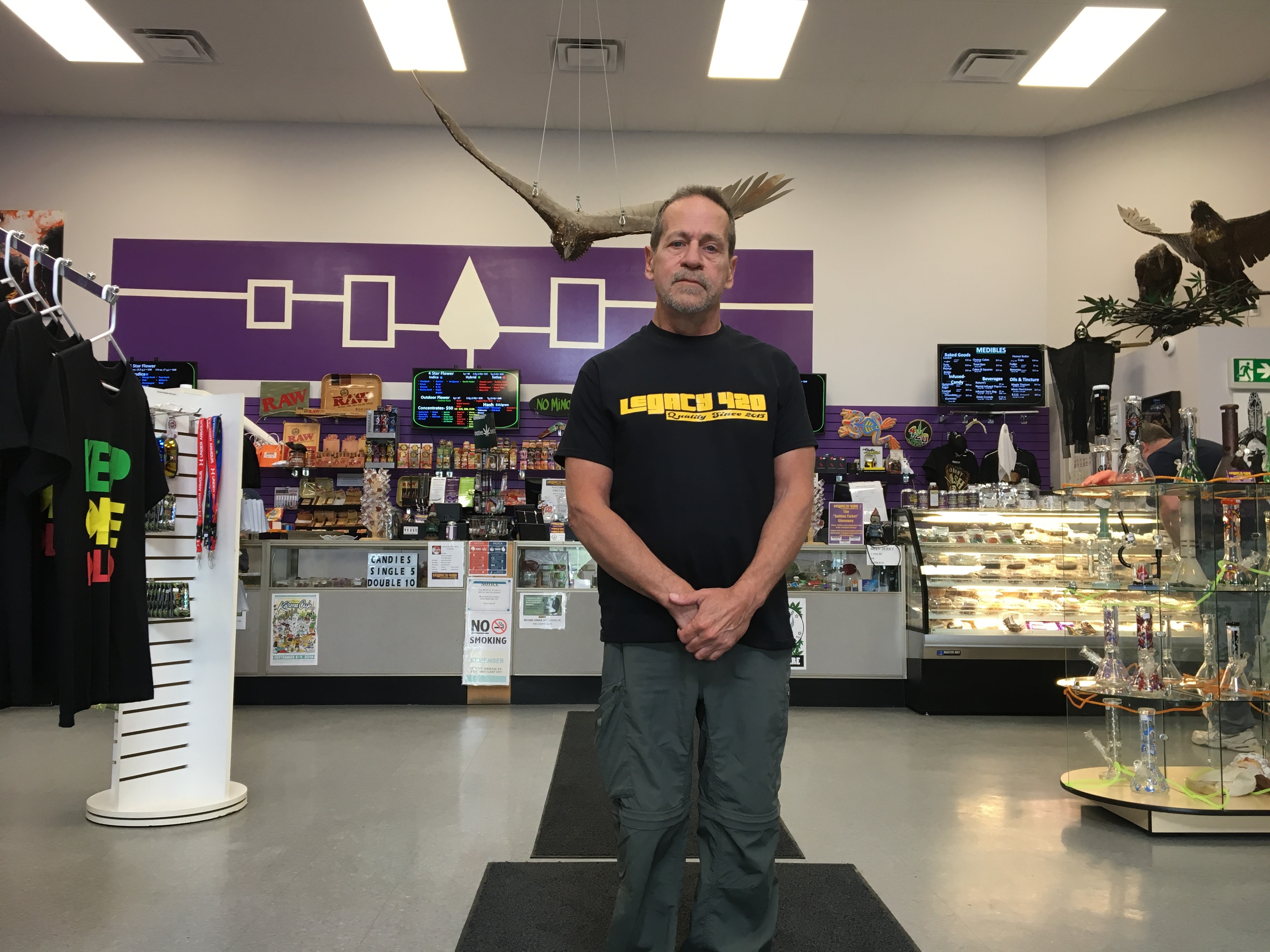 Tim Barnhart, a medical marijuana producer, owns Legacy 420. The dispensary, Barnhart says, is the largest in the province and the products are wide-ranging.