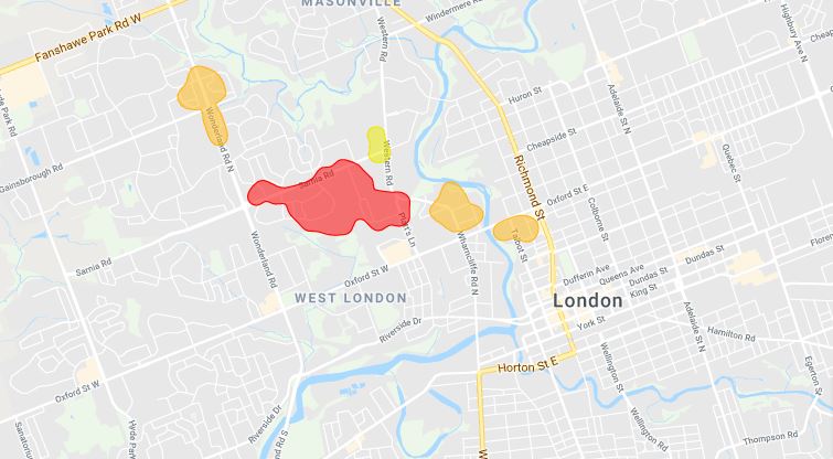London Hydro reported Thursday morning that nearly 1,500 customers were without power. The largest outage is south of Western University in an area bordered by Wonderland Road North, Sarnia Road, Western Road and Oxford Street West.