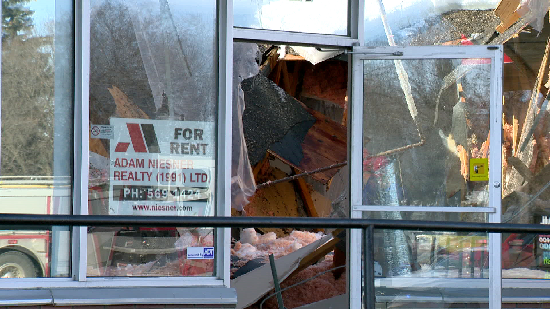 REGINA – Emergency crews were called to a strip mall in south Regina Thursday afternoon after a portion of the building’s roof collapsed.
