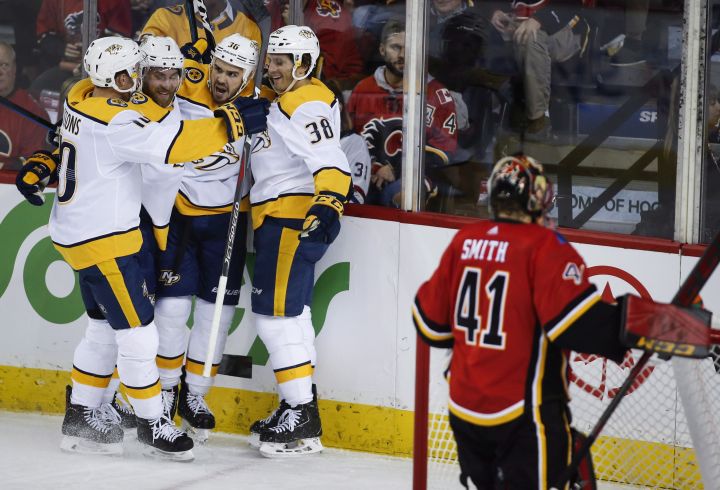 In the back-and-forth game, Nashville took the lead four times with Calgary answering back to tie it the first three times.