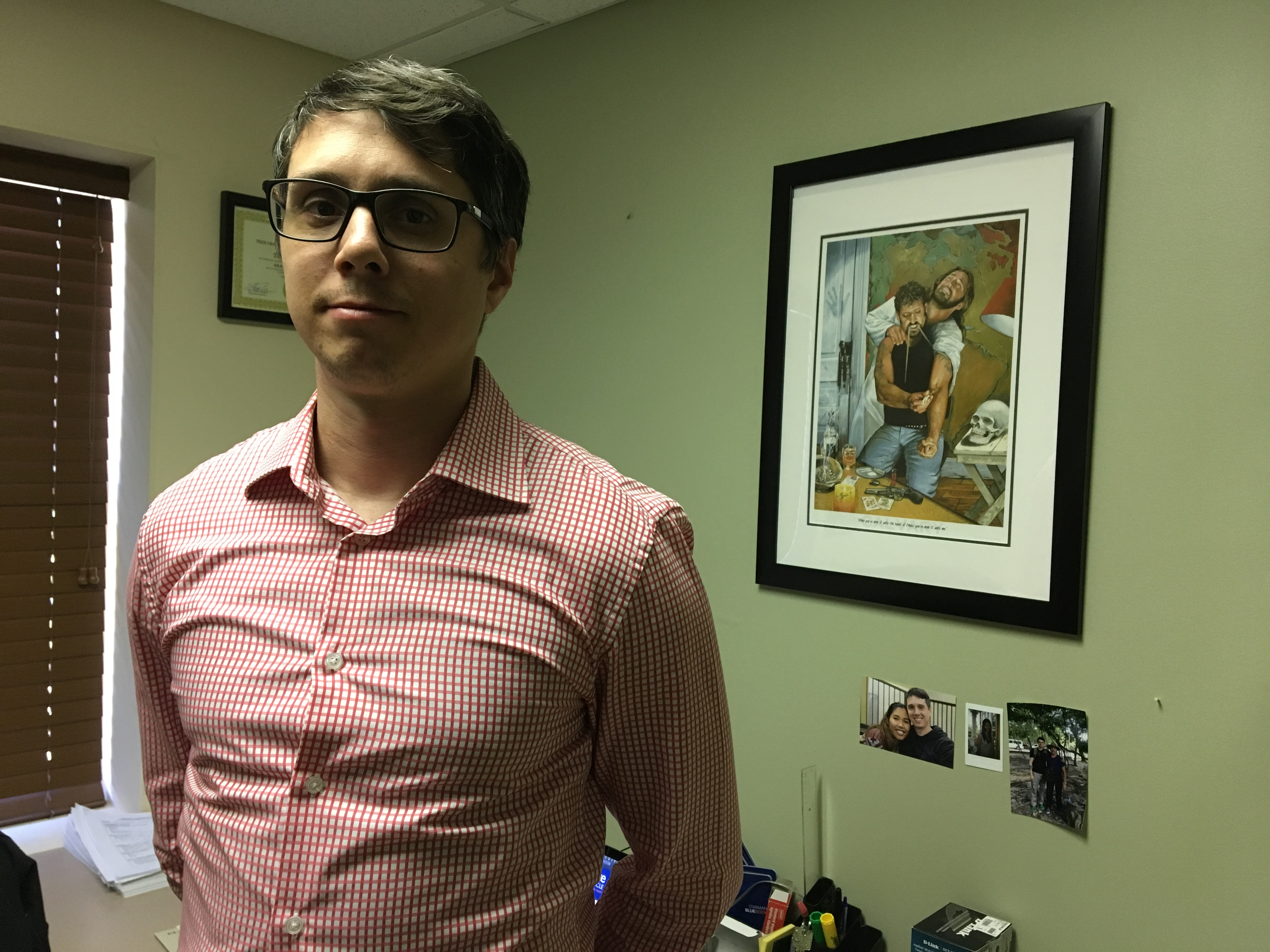 Above Tony Schaefer’s desk is a graphic reminder of what his life used to be like — at rock bottom, struggling with his own demons of addiction.