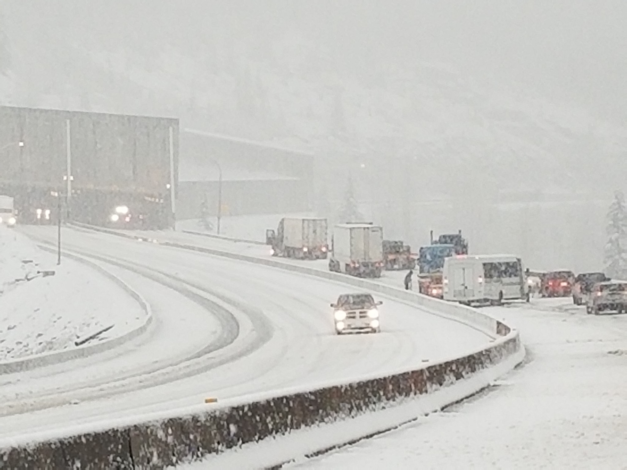 “We were trying to holler on the radio to pass the message to stay put down in the chain up. If you were coming southbound, it was very slippery coming down. We had a pickup truck with a horse trailer do a little jackknife down by the snowshed,” he said.