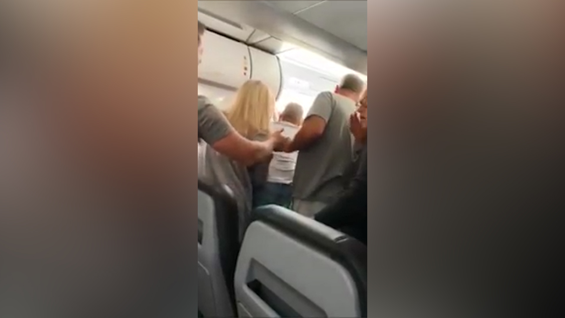 In a Facebook post, Ingham said the man began “kicking the cockpit door telling them to let him off.” Later, Ingham continued, he “then pushes the flight attendant into the door and opens it.”