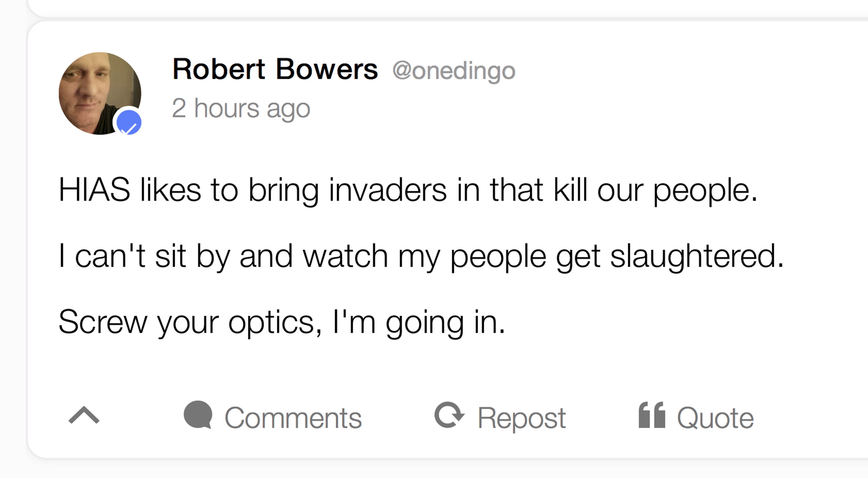 Hours earlier, he posted on Gab.com, saying a non-profit that helps refugees relocate to the country was helping to kill “my people.”