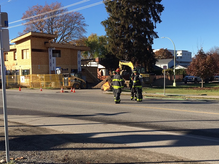 “It looks like they were trying to tie into a sewer line and they nicked a two-inch gas line.” said captain Shayne Kiehlbauch of the Kelowna Fire Department.