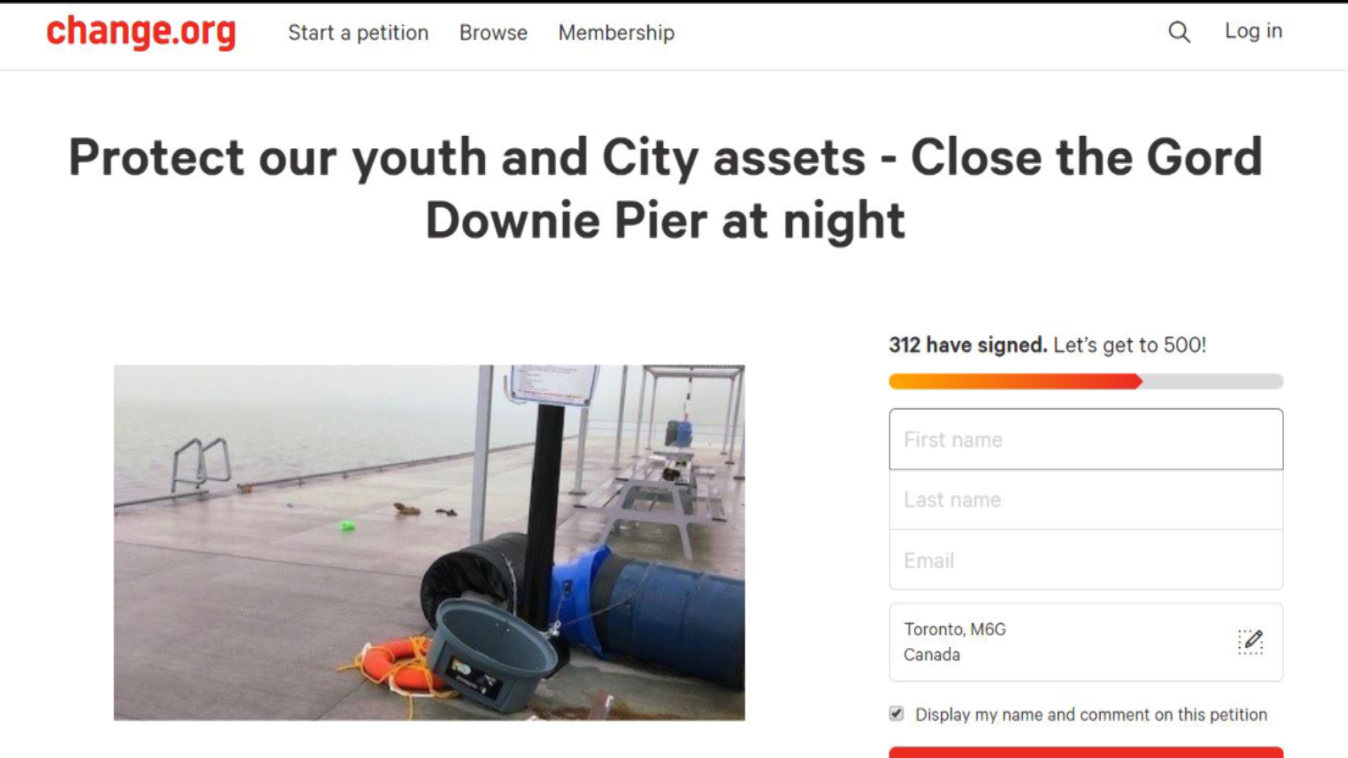 The petition says Kingston residents are finding young people partying late at night at the pier and often leaving behind broken beer and liquor bottles, cigarette butts, damaged recycling bins. There are even reports of hypodermic needles found at the waterfront.