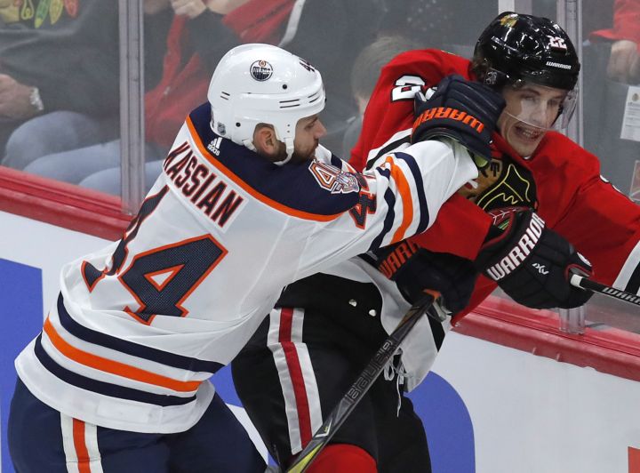 Kassian scored his first goal of the year in a 2-1 overtime win in Chicago on Sunday.