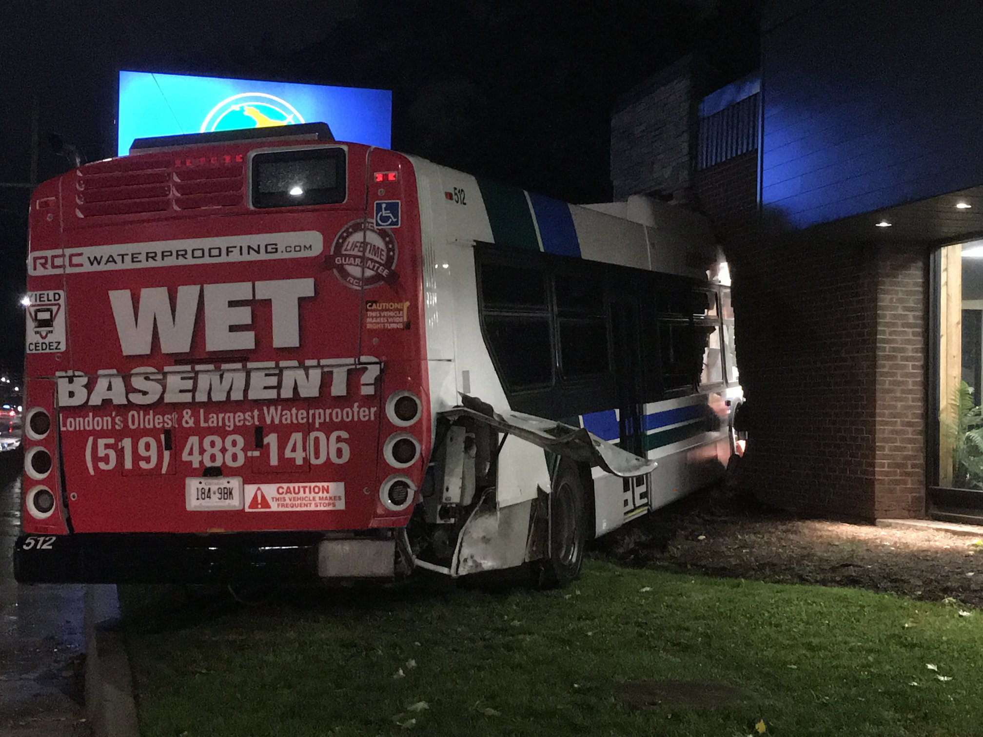 London police are investigating after a London Transit Commission bus crashed into a veterinary clinic on Oxford Street East near Waterloo Street.