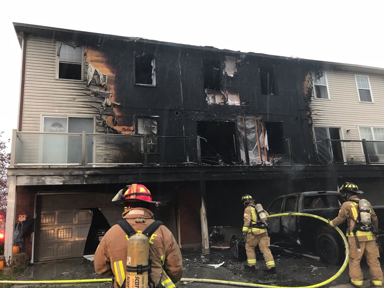 According to Barrie Fire, three townhomes and a pickup truck were involved.