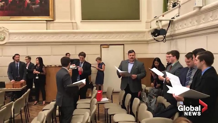 That is the question after a meeting to elect a new MP as chair of the Canadian NATO parliamentary association descended into chaos Tuesday night with what appear to be Conservative staffers and at least one Conservative MP, Garnett Genuis, seen in video obtained by Global News breaking into a rendition of Stan Rogers’ Barrett’s Privateers while pouring and passing around a bottle of unknown liquid.