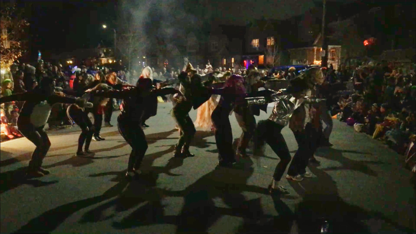 The flash mob was capped off by a series of flashes in the sky, as neighbours lit fireworks in celebration — both of Halloween and the brave souls who danced in front of the crowd of spooky spectators.