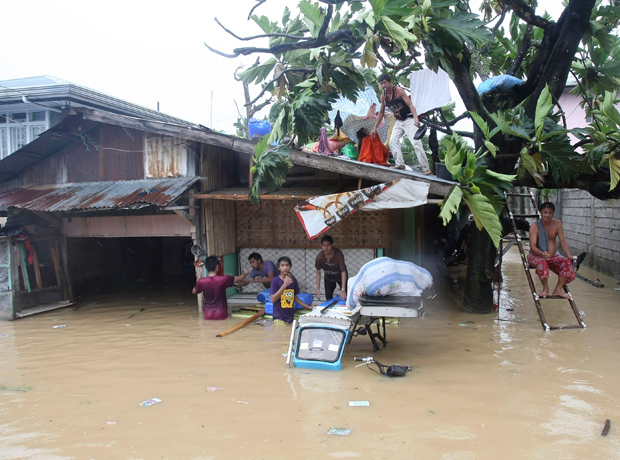 The second typhoon in a week battered the rain-soaked northern Philippines on Saturday, adding misery to the lives of thousands of people, some of whom were still perched on rooftops from previous flooding. Thousands of people were ordered to evacuate their homes after typhoon Nalgae slammed ashore south of northeastern Palanan Bay in Isabela province with winds of 160 kilometres per hour and dangerous gusts of 195 km/h. At least one person was killed in a landslide.