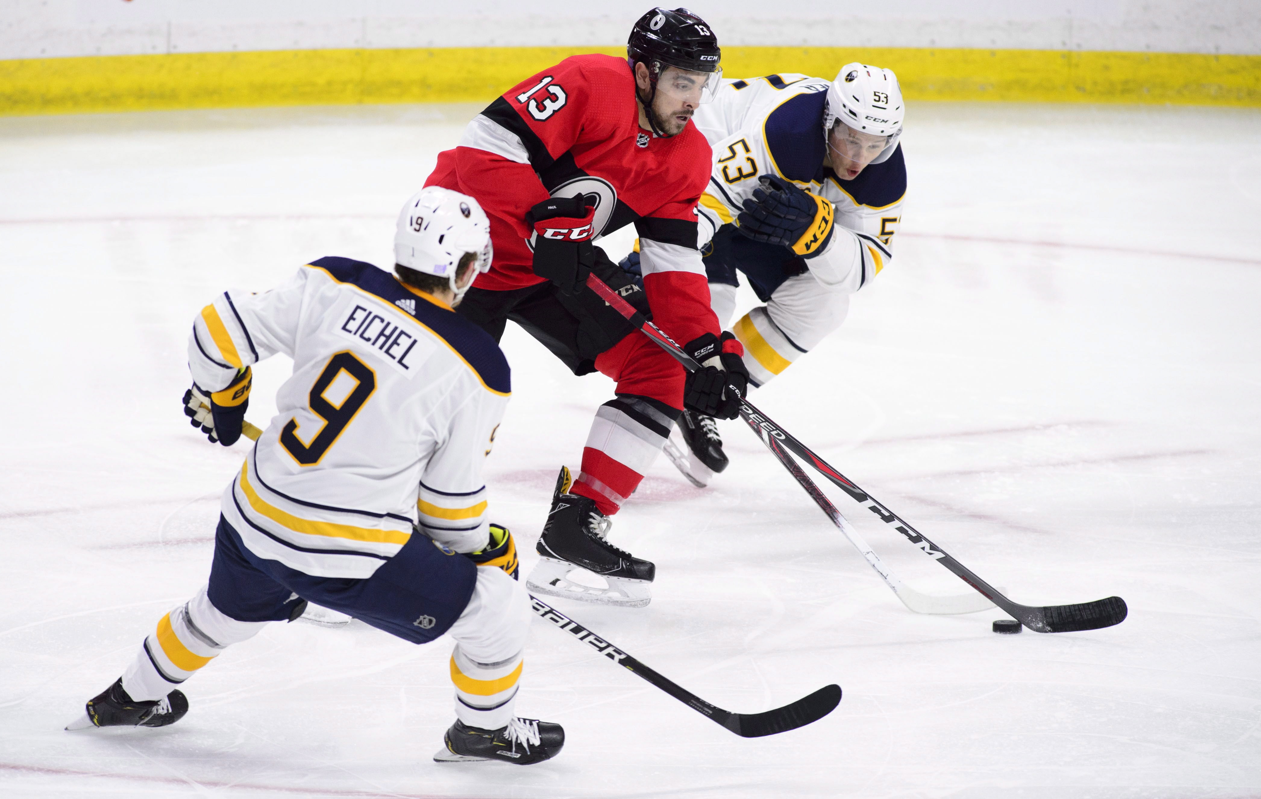 Dzingel opened the scoring at 6:55 of the first with Ottawa’s first extra-strength goal. He got the puck alone at the side of the net and was stopped by Hutton but then jammed his own rebound under the Sabres netminder.