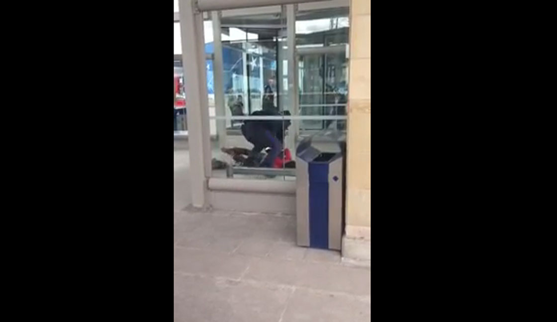 The video, captured last Friday by a passenger, shows a male special constable standing over top of a woman and using his legs to pin her to the ground as he tries to handcuff her at a VIVA bus terminal near Hwy 7. and Yonge Street.
