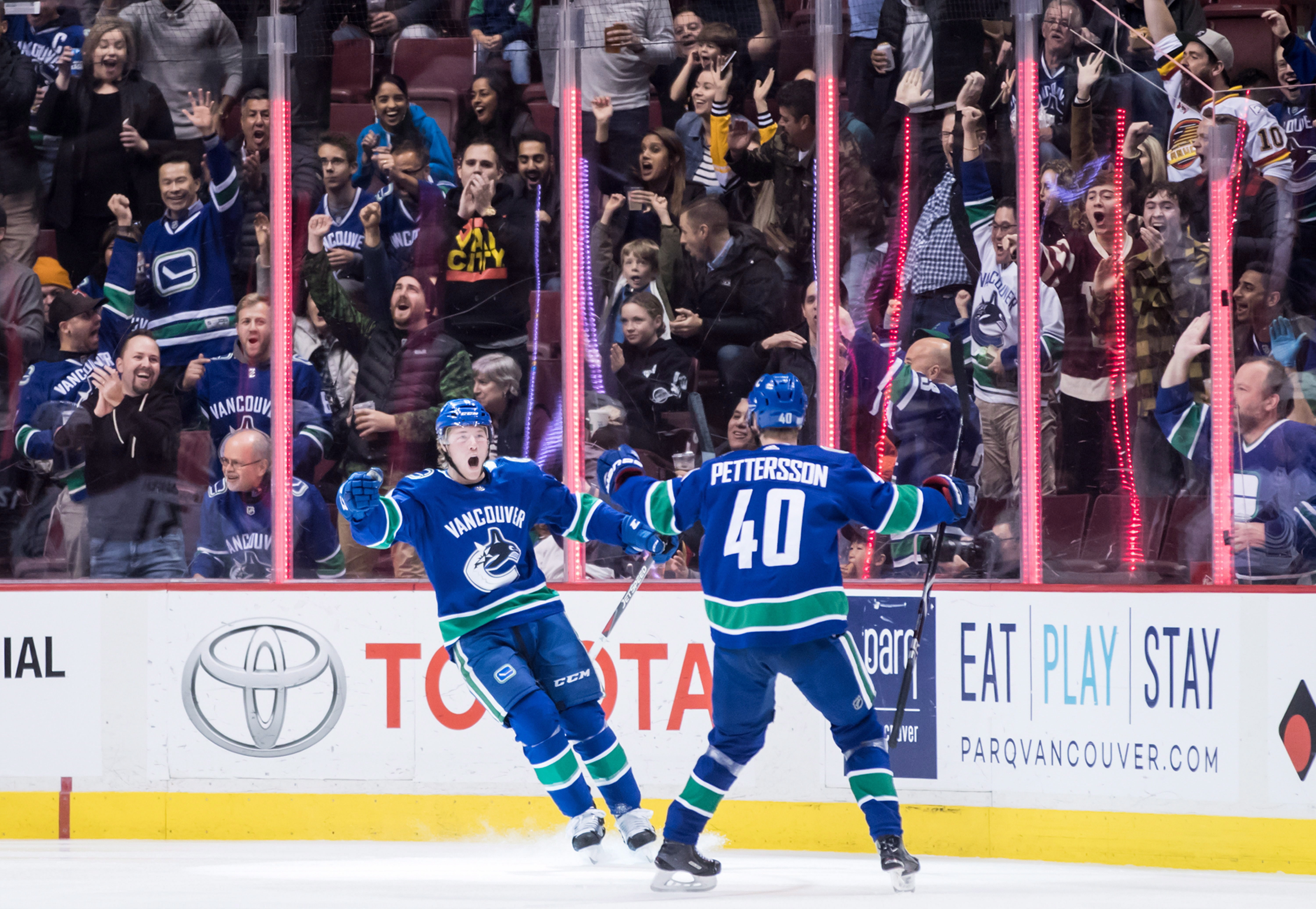 Boeser put the Canucks on the board just 58 seconds into the game after Pettersson slid him a long pass across the ice.