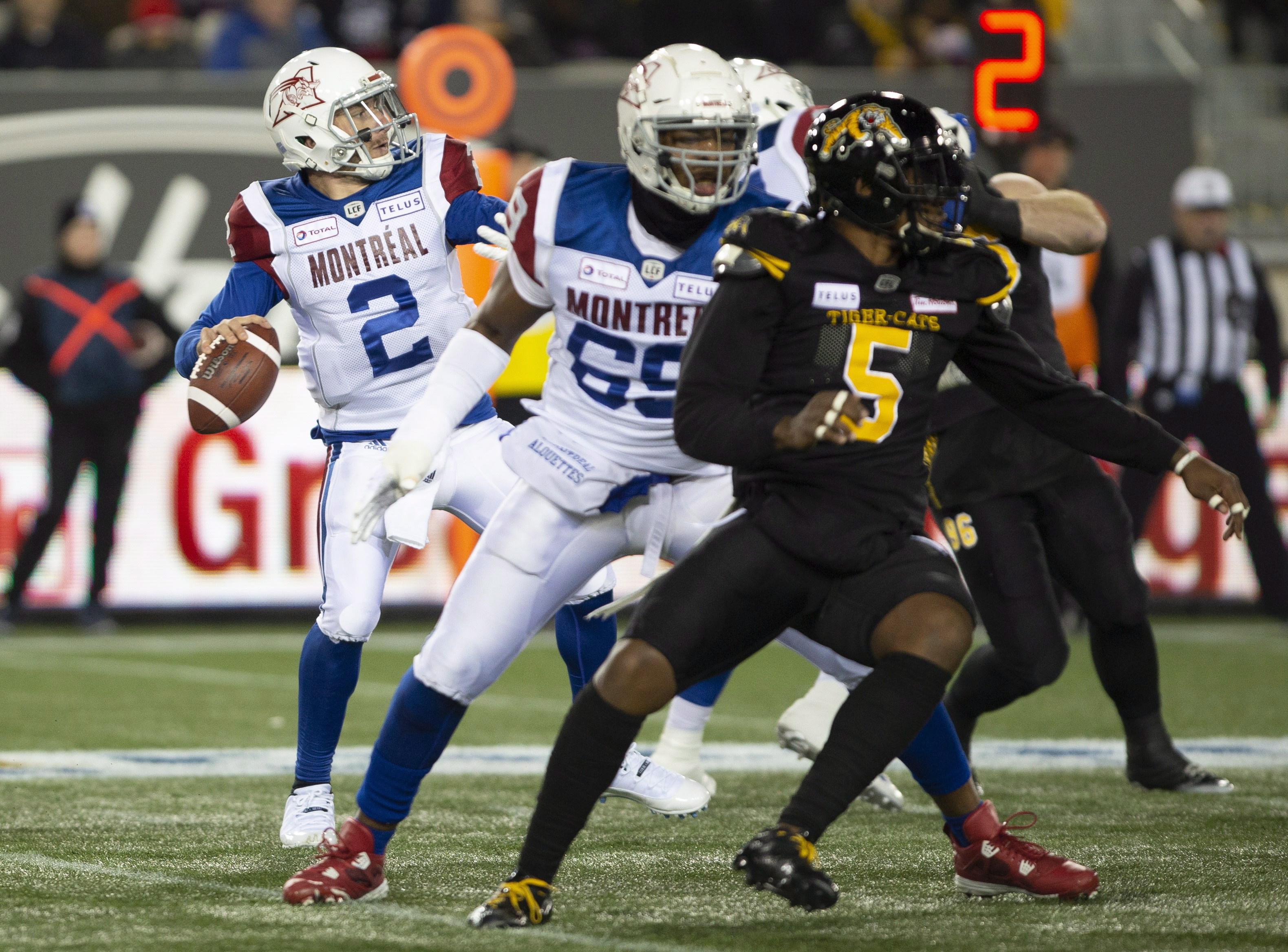 Hamilton’s Sean Thomas Erlington scored his first career rushing touchdown when he darted into the endzone from 2-yards out to trim Montreal’s lead to 20-18 early in the third quarter. Thomas Erlington ran six times for 41 yards while teammate John White had a game-high 88 yards on nine carries.