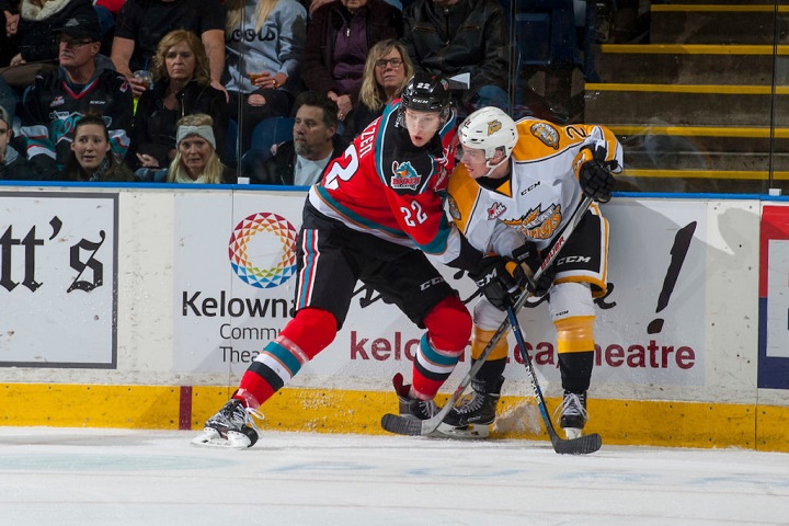 Kelowna’s Nolan Foote, whose father, Adam Foote, recently took over as the Rocket’s bench boss, scored twice and was named the game’s first star.