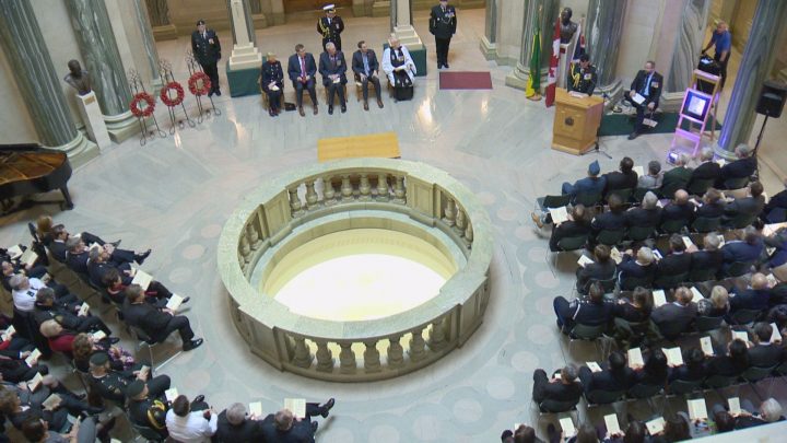 Saskatchewan Premier Scott Moe joined other dignitaries, veterans and members of the public at the legislative building on Wednesday to mark 100 years since the end of the First World War.