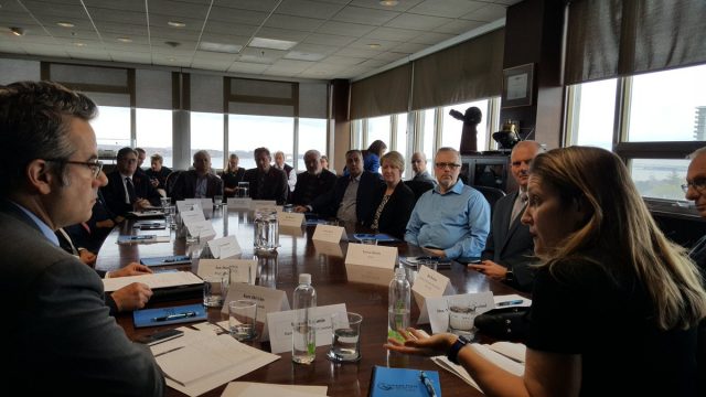 Freeland met with local steelmakers, chamber of commerce representatives and the Hamilton Port Authority, before touring Bunge Canada’s food processing plant on Burlington Street.